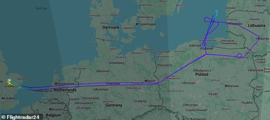 Дані про політ показали, що літак RC-135U "Combat Sent" вилетів із бази Королівських повітряних сил Мілденхолл у Саффолку (Англія) рано вранці у вівторок. Він пролетів над країнами Балтії, здійснив обліт Калінінграда і згодом повернувся до Великої Британії.
