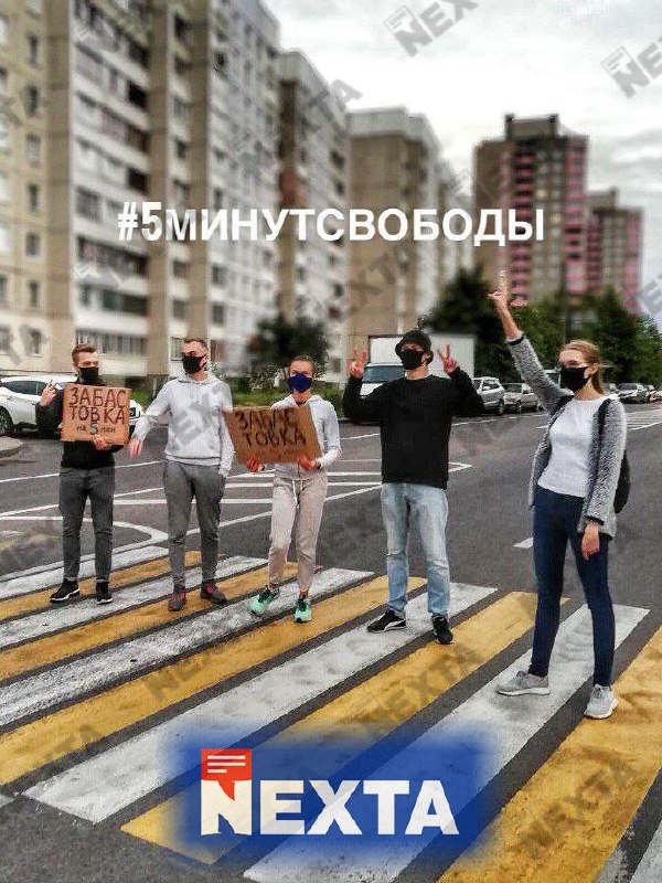 На вулицях Мінська деякі протестуючі вирішили перекривати дороги. Але не на весь день, а тільки на 5 хвилин. "5 хвилин свободи" - так вони назвали свої дії. На фото дійсно видно, що за молодими людьми стоїть колона машин, яка чекає, коли рух відновиться.