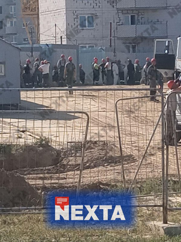 Страйк оголосив і ВАТ "Гродножілбуд". На фото видно, як робітники перестали працювати, а просто розмовляють і займаються своїми справами.