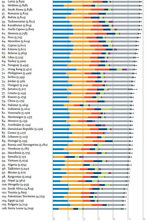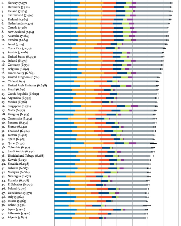 Рейтинг складався на основі таких показників, як ВВП на душу населення, соціальна підтримка, очікуваний час збереження здоров'я, свобода робити життєві вибори, благодійність і сприйняття корупції.