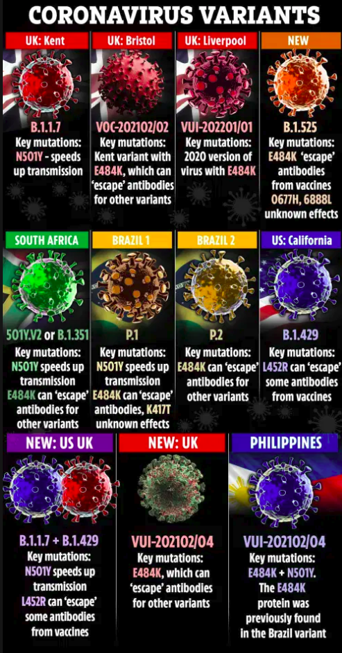 Управління охорони здоров'я Великобританії заявило, що цей варіант коронавіруса містить ряд небезпечних мутацій, в тому числі шипований білок E484K. Ця мутація була виявлена як в південноафриканському, так і в бразильському варіантах коронавірусу.