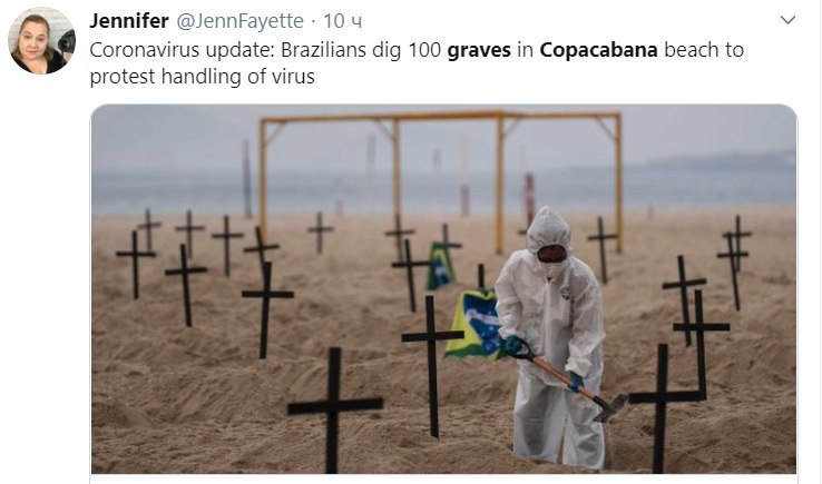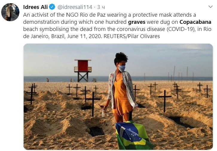 На знаменитому пляжі в Бразилії активісти викопали 100 символічних "могил" в протест проти дій влади під час пандемії коронавірусу.