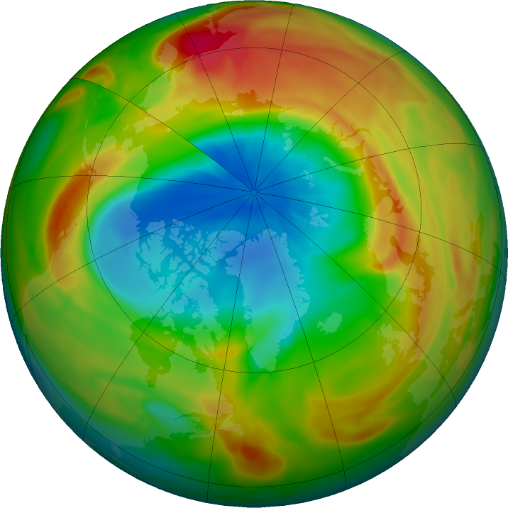 Наприкінці березня цього року вимірювальні аеростати над Північним полюсом на висоті 18 кілометрів зафіксували падіння вмісту озону на 90 відсотків: замість звичайних для цієї пори року близько 3,5 ppm (частин на мільйон) озону, тиждень тому показники знаходилися на позначці 0,3 ppm.