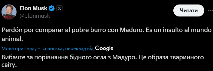 На тлі президентських виборів у Венесуелі американський бізнесмен Ілон Маск активно обговорює Ніколаса Мадуро в соцмережі Х.