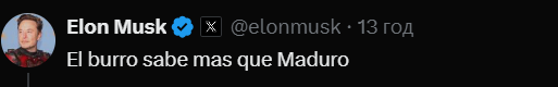 Американський бізнесмен залишив кілька постів на своїй сторінці, зокрема поширюючи інші дописи про Мадуро, зі словами "El burro sabe mas que Maduro", що можна перекласти як "Осел знає більше, ніж Мадуро".