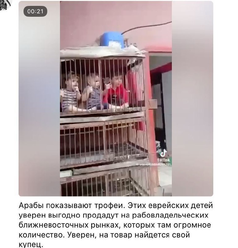На страшних кадрах видно, як маленькі ізраїльські діти сидять у клітках, наче звірі у найжорстокіших зоопарках. Відео знімають бойовики ХАМАС, які до того ж заливаються сміхом, знімаючи нещасних дітей. Самі ж бранці кричать і намагаються самостійно відкрити клітку.