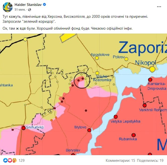 13:39 У Високопілля Херсонської області близько 2000 орків потрапили до оточення, – керівник цифрової трансформації у НАЗК Станіслав Хайдер.