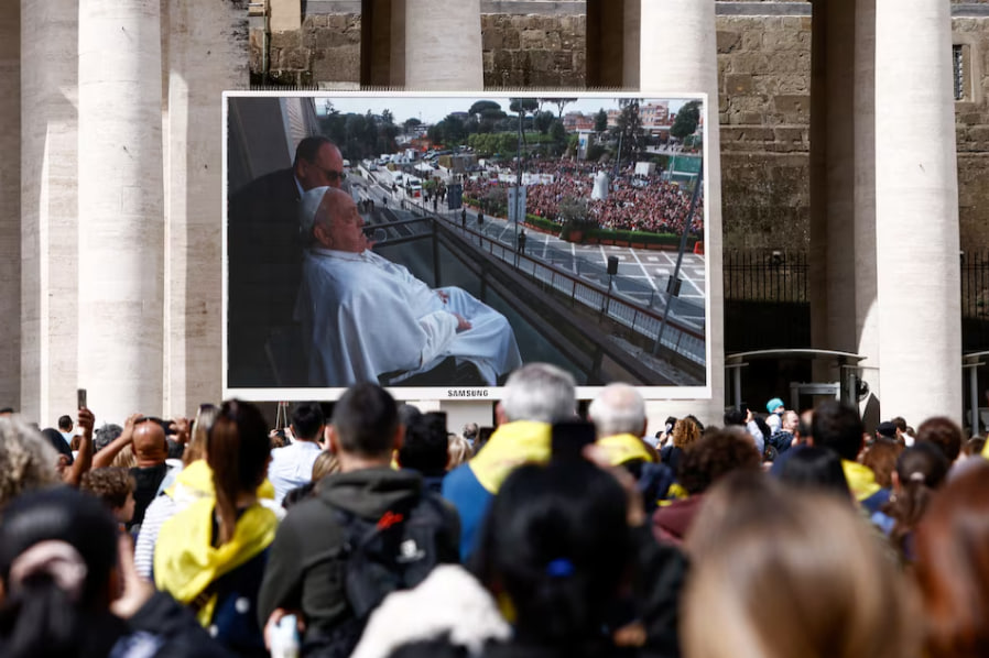 Автомобіль, який перевозив Френсіса, виїхав із лікарні незабаром після полудня в неділю, і його супроводжував через Рим конвой поліцейських машин.