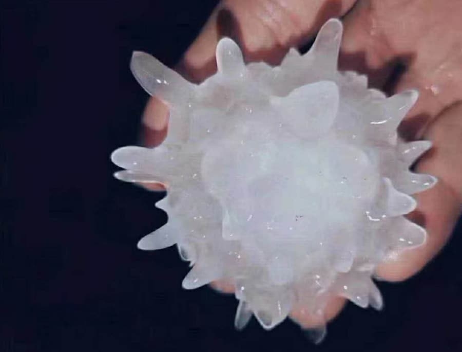 За даними видання, град дуже налякав очевидців, крижинки були гладкі, мали характерні шипи, які і привернули увагу.