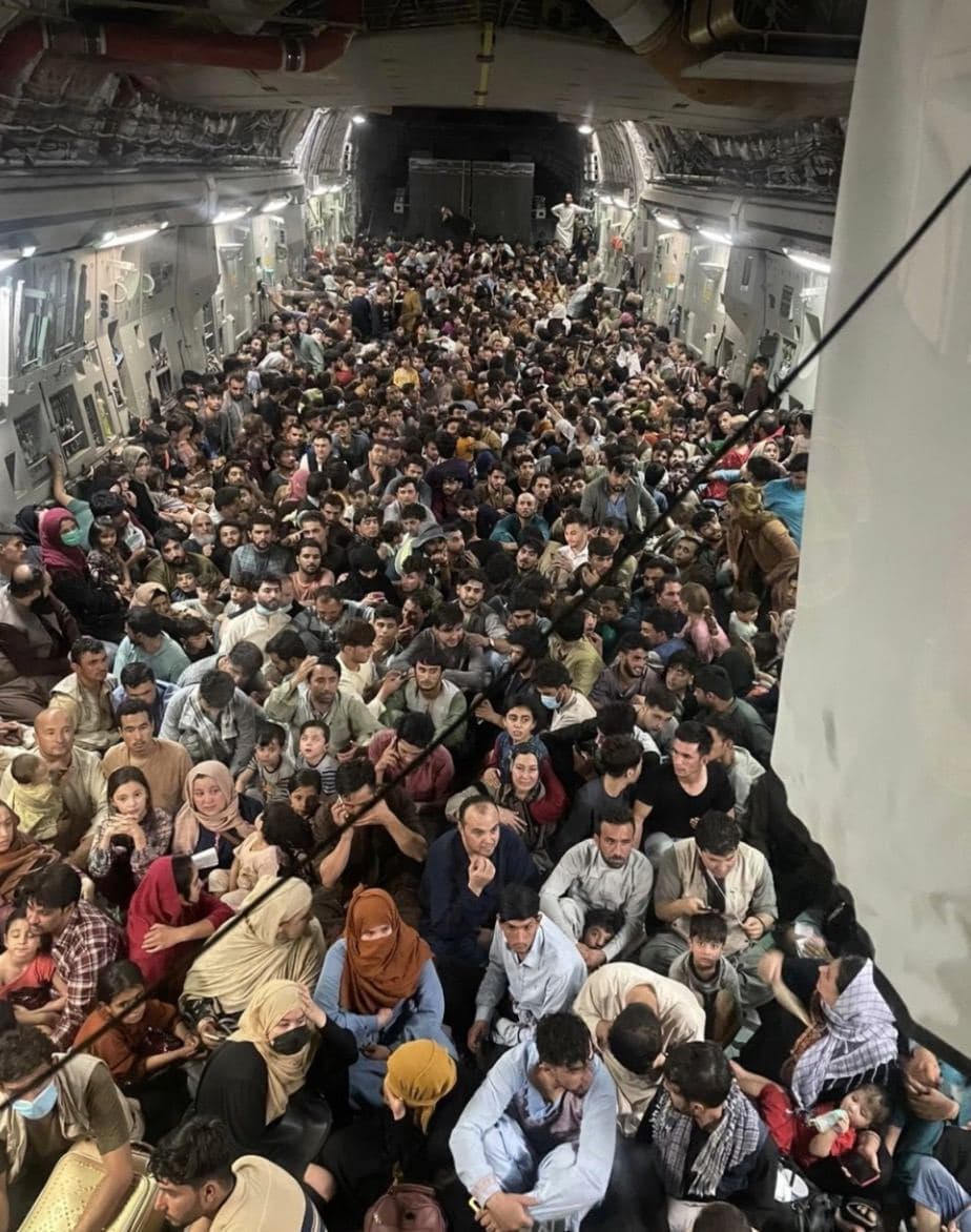 Вантажний літак С-17 Globemaster ВВС США, з авіабази Довер у штаті Делавер, вивіз зі столиці Афганістану Кабула 823 біженців, серед яких 183 дитини.