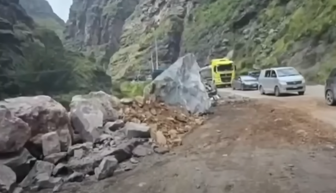 Крім того, цей зсув завдав вагомої шкоди самій інфраструктурі ділянки шосе. Каміння знищило частину дороги, викликавши занепокоєння водіїв.
