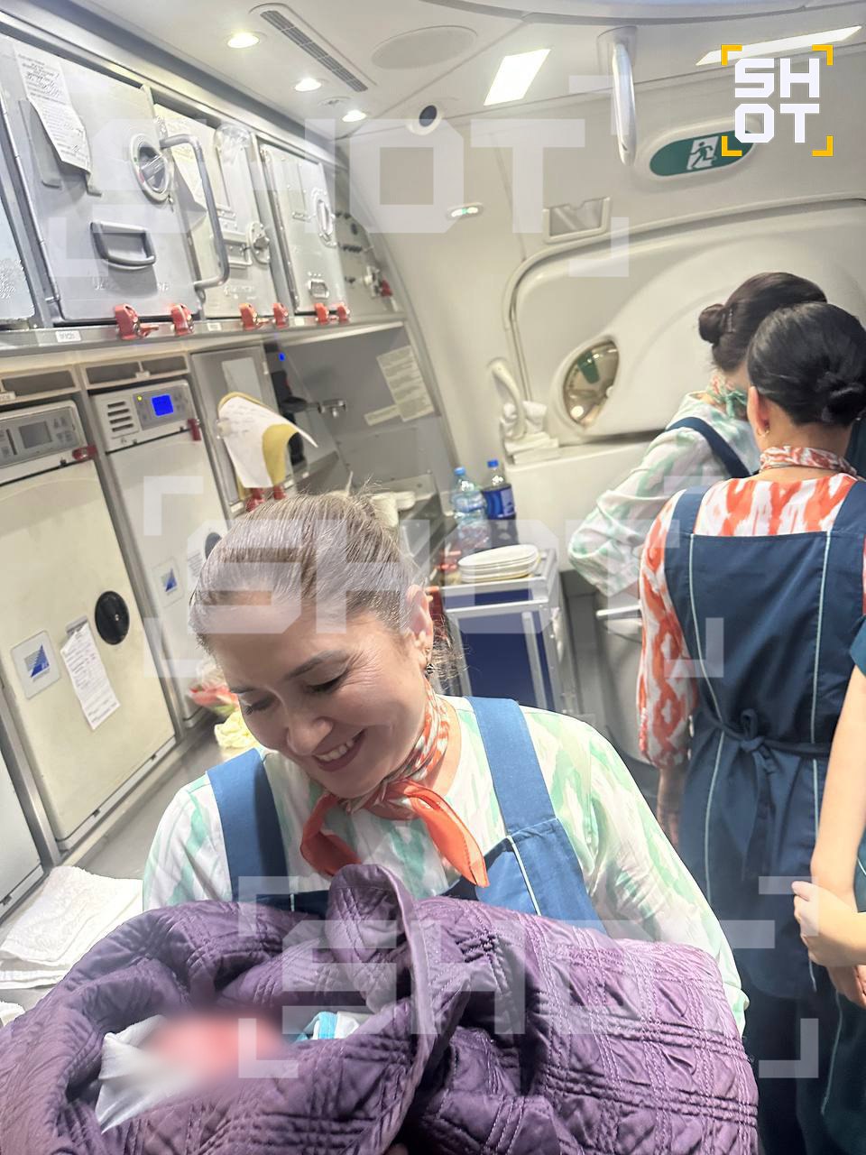 Зауважується, що ситуація трапилася на борту літака Uzbekistan Airways, що прямував до Нью-Йорка з пересадкою в Ташкенті. Прямо над Північним Льодовитим океаном на сусідньому ряду у громадянки Узбекистану раптово почалися пологи. Жінка летіла з 4 дітьми та чоловіком у бізнес-класі.