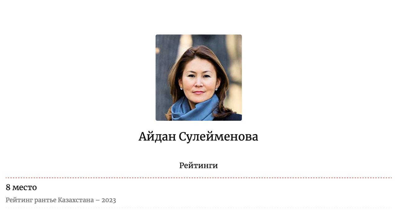 Видання нагадує, що Айдан Сулейменова є донькою першого голови МЗС Казахстану Тулеута Сулейменова та дружиною бізнесмена Даніяра Абулгазіна. Їй належить компанія ADD Invest Properties, яка управляє кількома великими торговими центрами у кількох містах країни.