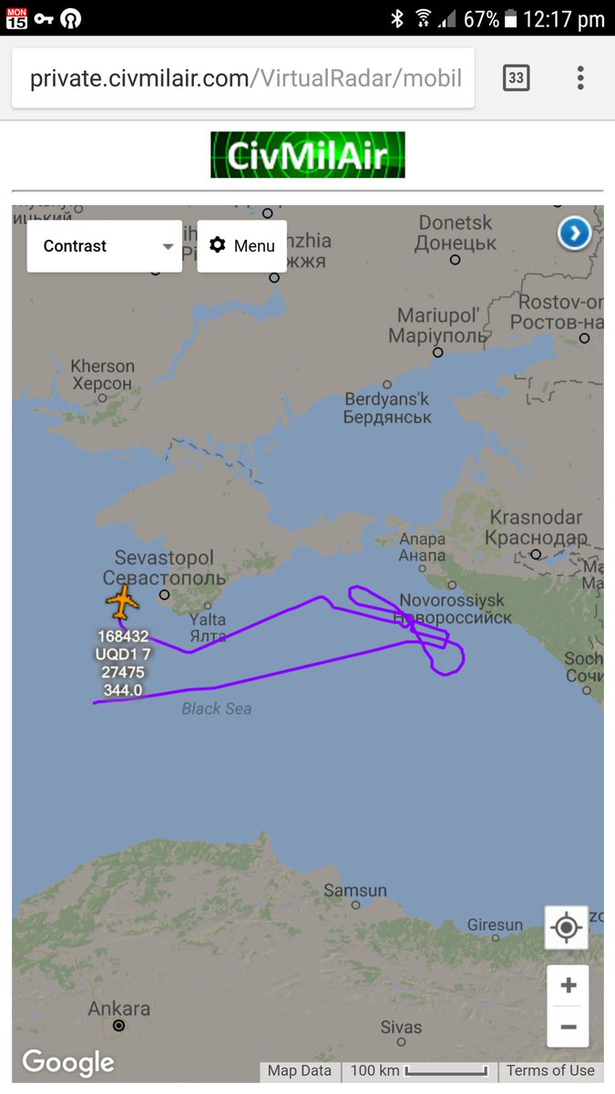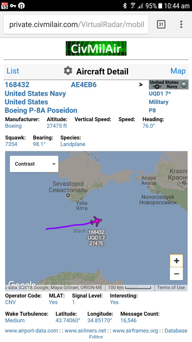 Судячи за схемою польоту, P-8 Poseidon зробив кілька кіл над Чорним морем біля Новоросійська, а потім пролетів біля Севастополя.