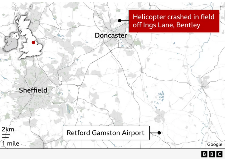 За даними поліції, незадовго до аварії гелікоптер вилетів з аеропорту Ретфорд-Гамстон, графства Ноттінгемшир.