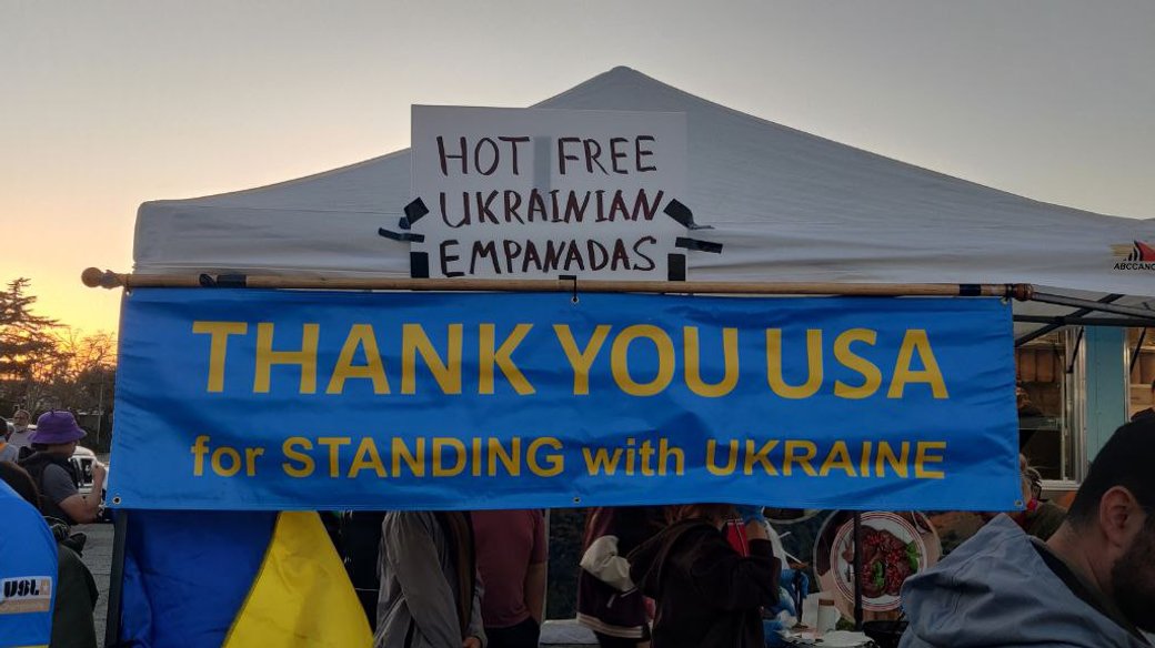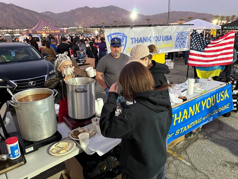 Так, українці годували американців українськими стравами. Для цього приготували 150 літрів борщу, 400-500 кримськотатарських чебуреків, вареники тощо.
