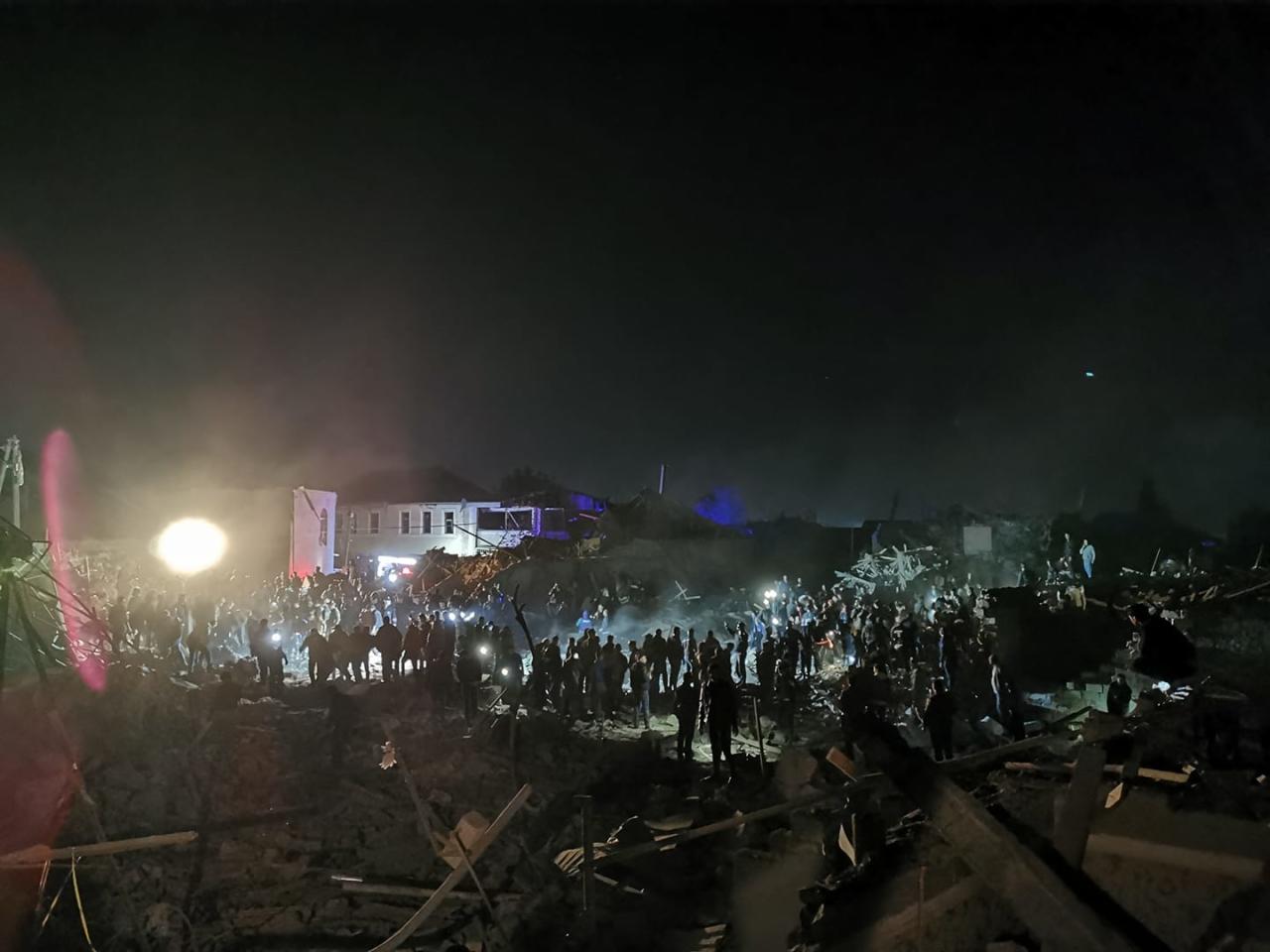 В Гянджа потрапили дві ракети, обидві в житлові квартали. Всього постраждали 20 будинків, п'ять будинків повністю зруйновано. Наразі тривають пошуково-рятувальні роботи.