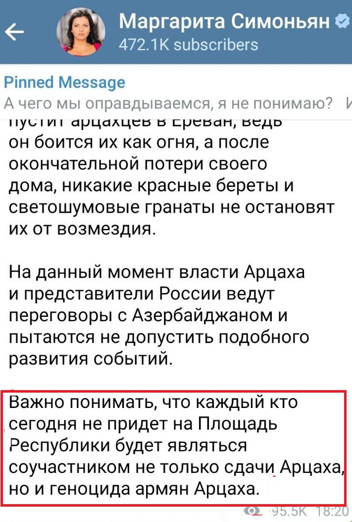 Також пишуть пабліки, що представників "старої гвардії, які давно мріють викинути Пашиняна з прем'єрського крісла, ненавидять у Вірменії анітрохи не менше, ніж самого Нікола Пашиняна".