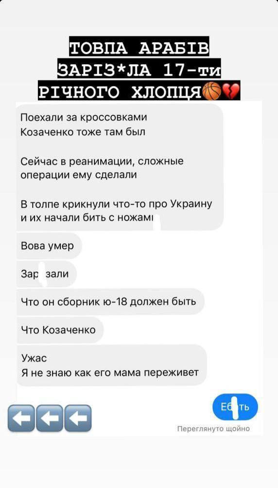 "Напередодні чергового матчу на них напали з ножами на вулиці просто за те, що вони – українці. Вся команда провела ніч у лікарні поруч із нашим хлопцями. На превеликий жаль, лікарі не змогли врятувати Єрмакова, а Козаченко залишається в реанімації. Місцева поліція вже веде справу, на місці злочину були свідки", – вказує Федерація баскетболу міста Київ.