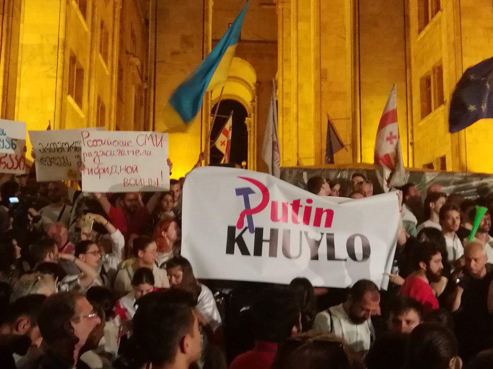 - біля будівлі парламенту в Тбілісі спалили прапор Росії і "передали привіт" Україні.