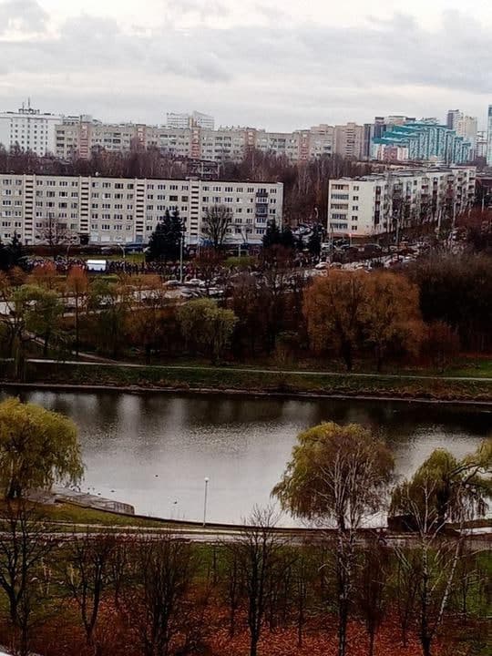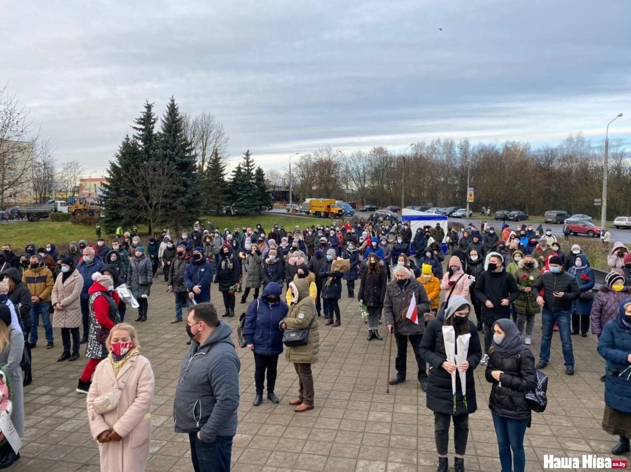 Судячи з кадрів з місця, на вулиці зібралося багато людей, на одному з фото видно колону білорусів.
