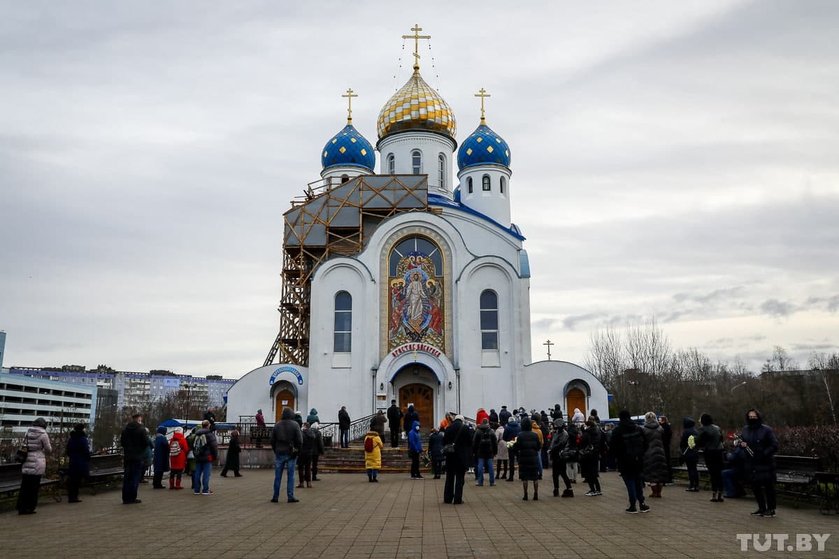 Люди збираються поруч з Храмом Воскресіння Христового, на вулиці Гамарника, щоб попрощатися з активістом. Люди несуть до храму квіти і вінки, щоб вшанувати пам'ять активіста.