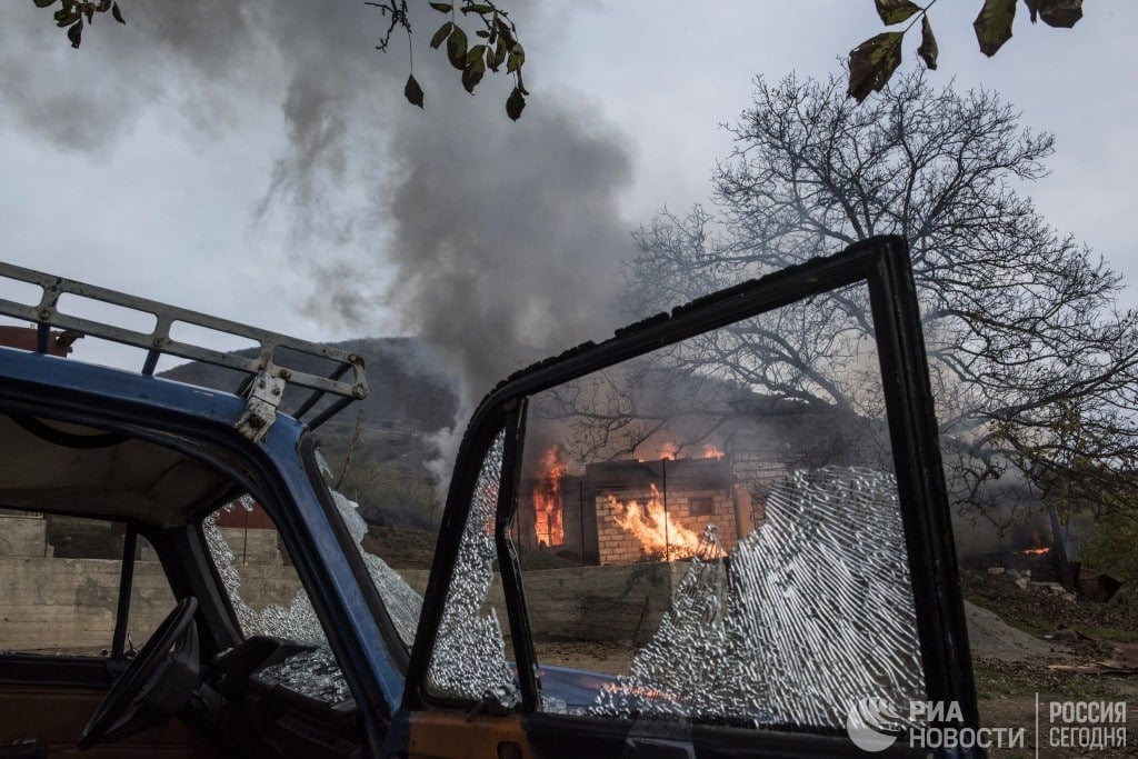 У Нагірному Карабасі вірмени підпалюють свої будинки і виїжджають з районів, які переходять під контроль Азербайджану.