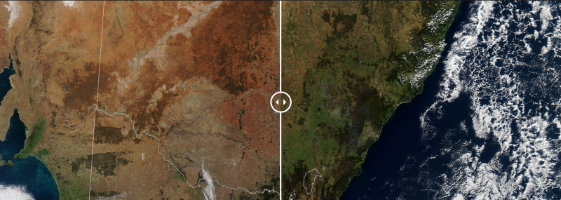 Є і позитивні зміни. Так, територія Південного Уельсу, Австралія, в 2018 році, після трьох посушливих років, виглядала випаленою. На початку 2020 року почалися сильні дощі, які повернули регіону зелені пейзажі.