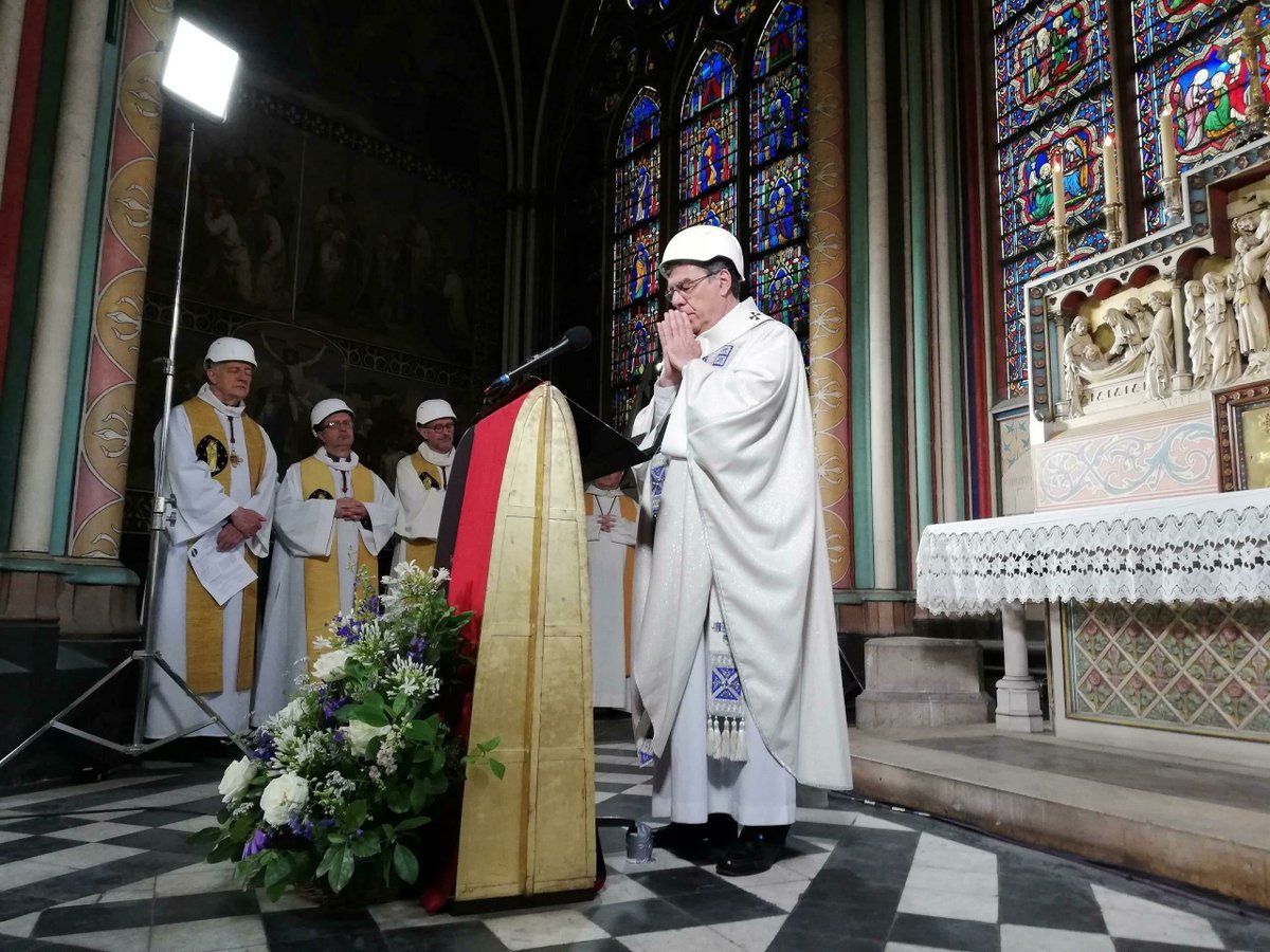 France Info відзначає, що меса пройшла в каплиці, якій не зашкодила пожежа. На ній були присутні близько 30 осіб, з міркувань безпеки вони наділи будівельні каски.