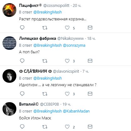 "Зростає продовольчий кошик...", "А піп був?", "Ідіотизм... а чому лезгинку не станцювали?", "Бійся Ілоне Маск", "Красивий смітник, там можна навіть жити)", "Через місяць відео буде?", - пишуть коментатори.