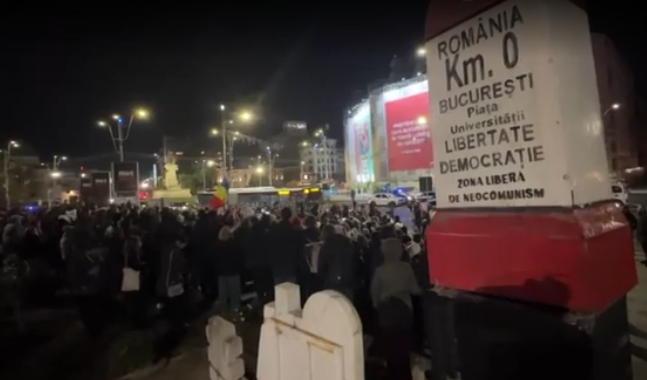 У Бухаресті 26 листопада молодь вийшла на акцію протесту проти ультраправого націоналістичного кандидата Келіна Джорджеску, дружнього Кремлю, який вийшов у лідери після першого туру виборів президента.