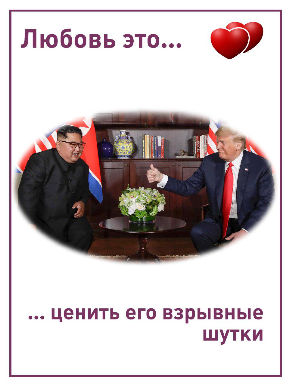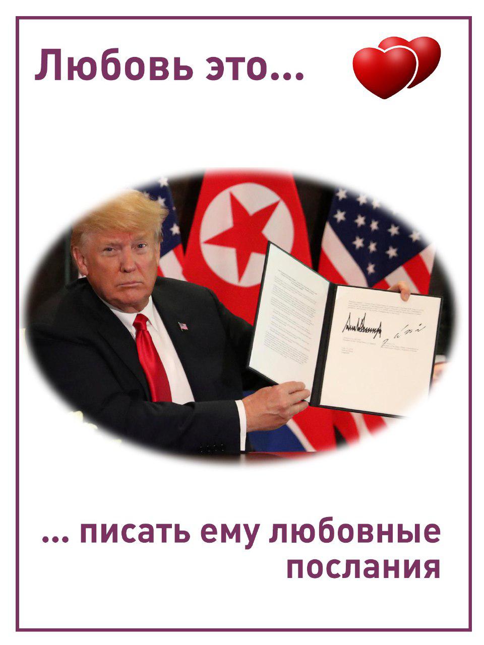 Тим часом видання "Лентач" показало, як виглядали б стосунки Трампа і Кім Чен Ина, якби вони були героями вкладишів популярної жвачки Love is.