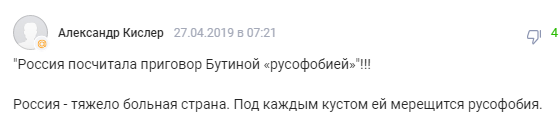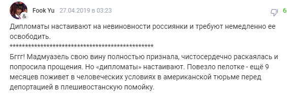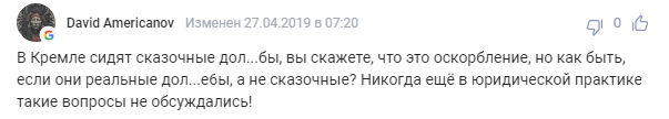 "Русофобія - це нинішнє керівництво в кремлі, решта - наслідки", "Так вона ж сама визнала свою провину.. Видно знову венесуельський порошок долетів до рашкованскіх дипломатів", "Росія - важко хвора країна. Під кожним кущем їй ввижається русофобія", "у Кремлі сидять казкові дов... би, ви скажете, що це образа, але як бути, якщо вони реальні дов... би, а не казкові? Ніколи ще в юридичній практиці такі питання не обговорювалися!", "у Демида один текст на все))", - пишуть коментатори.