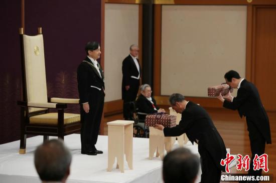 Церемонія проходить в імператорському палаці в Токіо. Новому імператору вручили регалії, які служать символом його повноважень. Зокрема, Нарухіто отримав меч і дорогоцінну яшму.