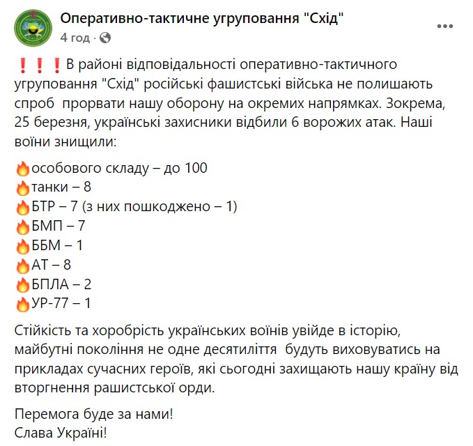 01:19. зведення Генштабу за 25 березня