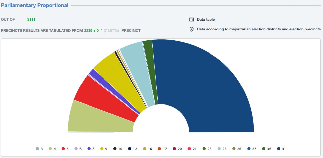 Такі дані говорять про те, що партія не отримує конституційну більшість, адже для цього необхідно мати мінімум 3/4 місць у парламенті.