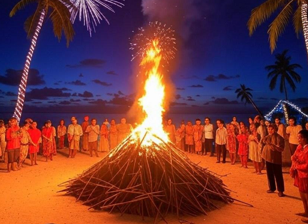 Жителі цієї острівної держави зустрічають Новий рік найпершими на планеті, а все тому, що країну поділено на три часових пояси і в східній її частині свято зустрічають першими на планеті. Це стало можливим завдяки тому, що у 1994 році тоді ще кандидат в президенти цієї країни пообіцяв: якщо виграє вибори, доб"ється того, що жителі Кірібаті будуть зустрічати Новий рік раніше за всіх. І виконав свою обіцянку