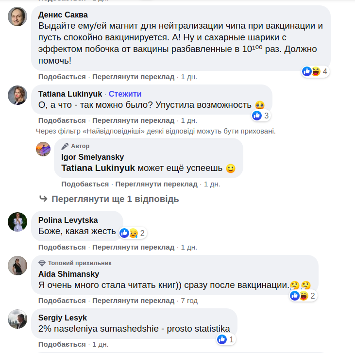 "Загалом, тепер я знаю чому політики та експерти кричать на різних шоу - це у них побічний ефект від щеплення", - іронізує Ігор Смілянський.