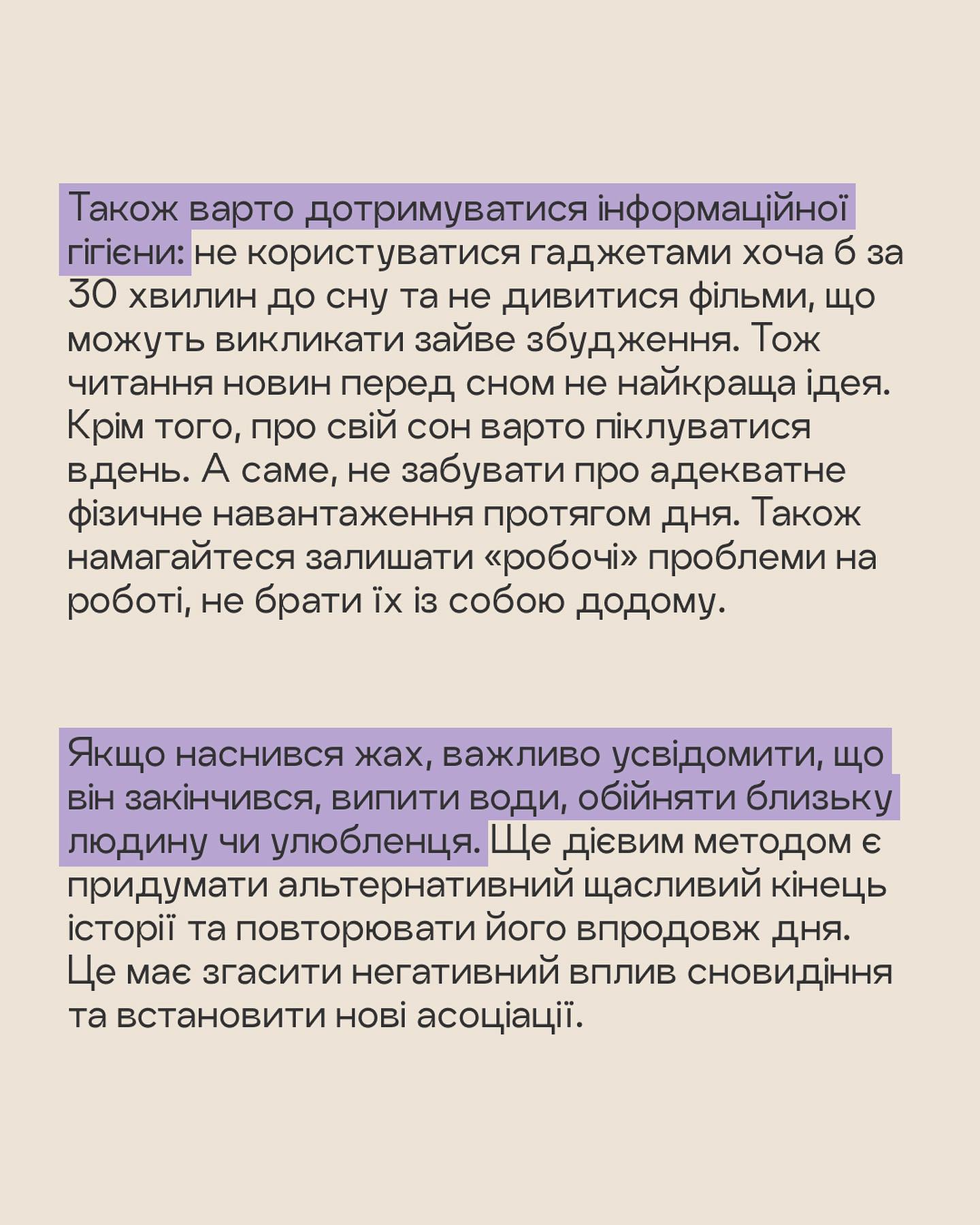 - пам'ятайте, що норма сну – 7-8 годин. Якщо не вдалося виспатися вночі, спробуйте "надолужувати" вдень.