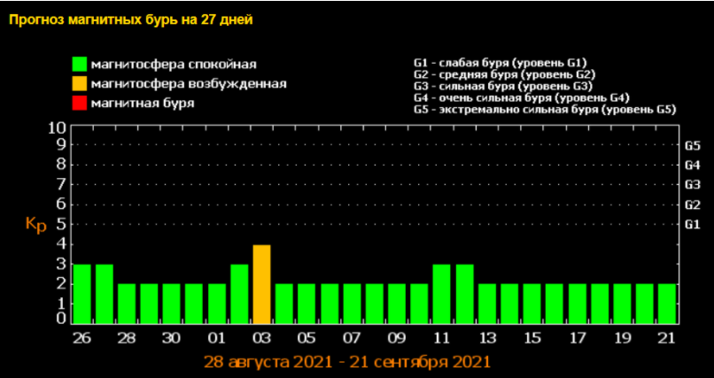 3 вересня - сила геомагнітних коливань досягне 4 балів, а за окремими оцінками - п'яти (червоний рівень небезпеки)