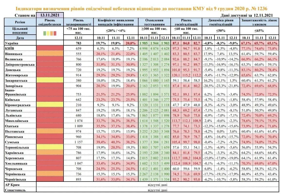 При цьому загальний рівень госпіталізацій хворих на коронавірус не перевищено всього в чотирьох областях: Закарпатській, Кіровоградській, Тернопільській та Черкаській.