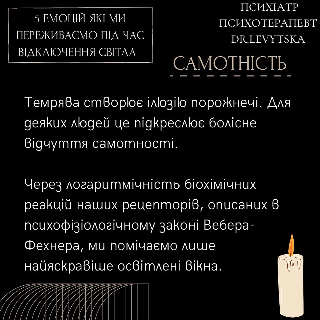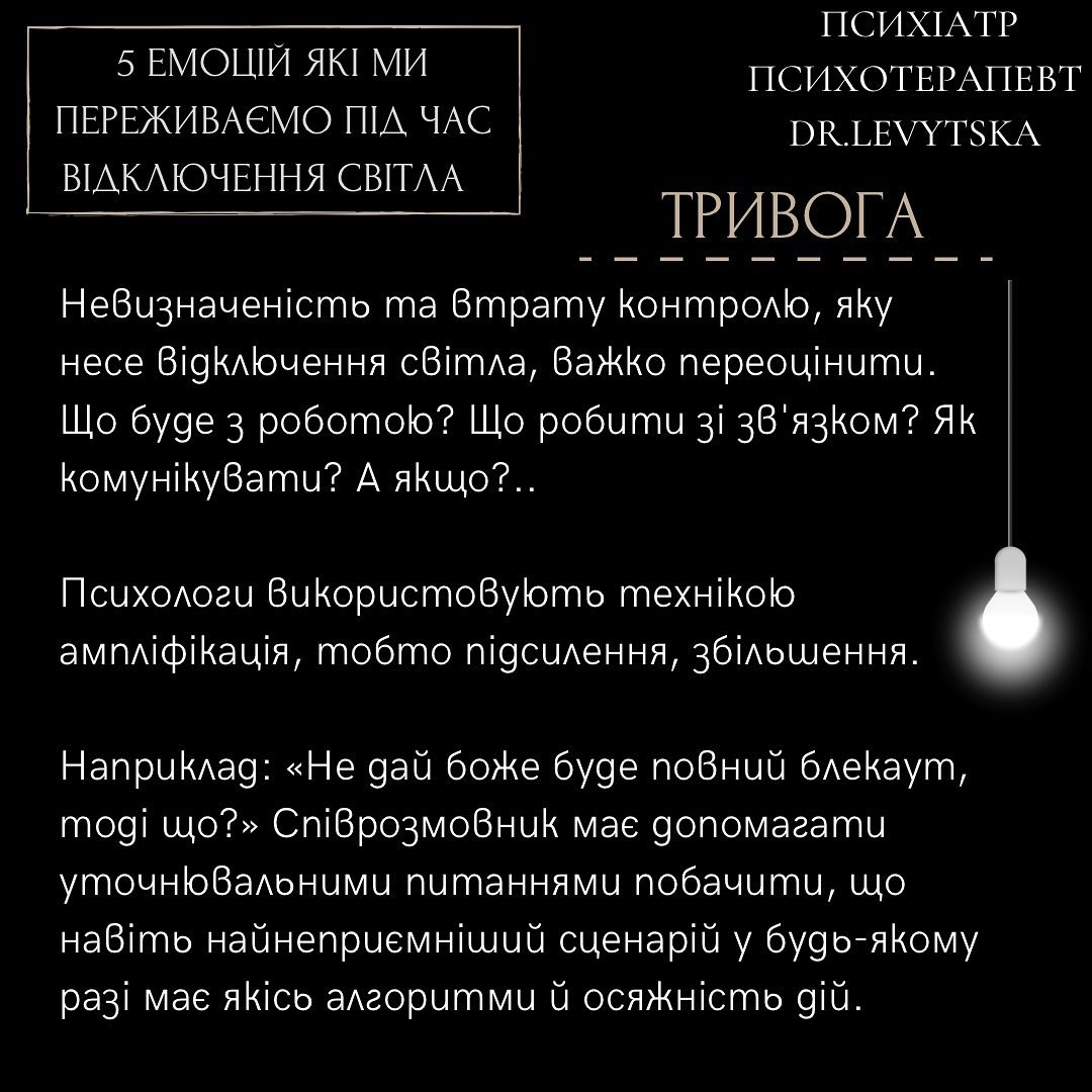 Тривога - ми відчуваємо невизначеність та втрачаємо контроль через відключення світла.